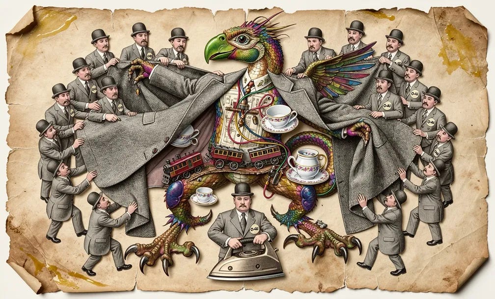 This week’s image aesthetic (Flux 2 Pro): Surrealist Vintage Collage (The "Monty Python" Look)